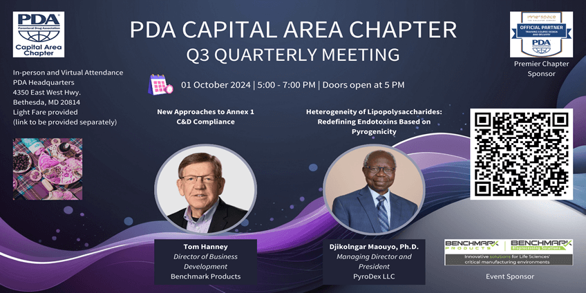 PDA Capital Area is pleased to announce its Q3 Chapter & Membership Quarterly Meeting, which will include a Technical Presentation and Networking.
