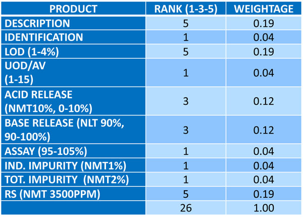 (2) Critical to quality identification and a protocol-based analysis methodology: A criticality assessment must be performed with respect to CQAs, CPPs and CMAs. Assessment tools, such as risk priority number, failure mode and effects analysis, fishbone diagram and others, could be used to list and provide criticality ratings (high, medium or low) for all quality attributes while providing a rationale for these ratings. The ratings should be based on three criteria: safety, efficacy and quality. We can then develop a protocol-based criticality assessment document to identify key process parameters or material attributes we want to focus on.