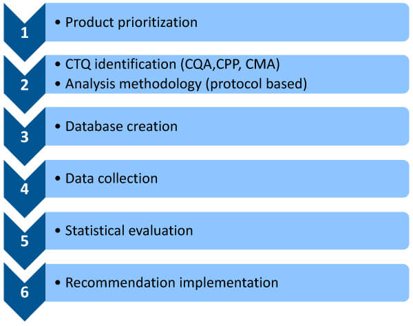 (4) Data collection: To perform such a study, it is necessary to consider all the data available. This is achieved by checking the registration dossier, the subsequent notifications, all production documents (e.g., batch records) and all quality documents (annual periodic reviews). Various documents can be evaluated for data collection —certificates of analysis, APQRs, batch production records, stability data, a summary of incidents, deviations, out-of-specifications (OOS) and a summary of yield.